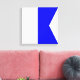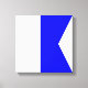 This maritime flag represents the letter A (called "Alfa") in ICS (International Code of Signals) and NATO maritime standards. It can be used with other flags to spell a message.