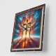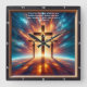 clock acts as a daily reminder of the comfort and power of faith. Personalize this timepiece to reflect your unique style using our Design Tool. Adjust the numeral colours and hand styles to create a piece that speaks to your heart. Whether for your home or as a meaningful gift, this clock blends timekeeping with a powerful spiritual message. Three towering wooden crosses with Jesus emerge against a mesmerizing fusion of sunset and space.