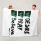 This fleece blanket design is based on the Mark 11:24 bible scripture displaying the word "Desire, Pray, Believe" a paint brush stlye print font with black letters and green and black checklist plus bible citation in this KJV faith based quote theme. This Blanket is made from 100% buttery soft and cozy polyester fleece with edge-to-edge vibrant full colour sublimation printing and double edge stitching with a off-white coloured back machine washable.