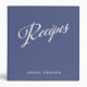 Beautiful coastal blue with brushed white calligraphy 'Recipes' title. Personalize your name on the front and the spine title label. This minimalist style is a versatile gift idea for many types of occasions or to use as an organizational tool. Modern clean look and highly customizable.