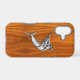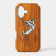Un design d'applique de poisson marlin chromé argenté sur un décor de style bois de teck. Un cadeau nautique moderne et élégant.