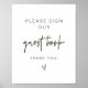 This "please sign our guestbook" sign features an edgy handwritten font with a forest green and white colour combination. Its simple design is the perfect baby shower sign for the modern mom.. All colours are editable to match your theme!