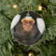 This round, hanging decoration, features a full colour, close up photograph, of a common marmoset. The white tufts on the ears, flattened face and black and white fur make the orange eyes pop. They belong to the Callitrichid family and are referred to as tamarins or tamar-ins. IDEAL FOR: Gifts for friends and family who have pubs, any nature or primate lover, or for any curio shop carrying monkey merchandise. ORNAMENT SHAPES: Choose from the wide range available and the art work will automatically be applied to the one you choose. CUSTOMIZE IT: Add your own personal message or captions to the products, to make it unique. Simply select the "customize it" button to add text and image templates. MATCHING RANGE: For the full range of merchandise in this photo, visit our homepage. COPYRIGHT: Images from Africa copyrighted to Robin Wood - all rights reserved. STORE ADDRESS: http://www.zazzle.com/rowood*