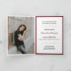 Enjoy a little whimsy with a mix of typefaces on this graduation announcement and invitation. The front has boxes for three senior photos along with your name, school, and class year. The inside includes space for the commencement ceremony details and an invitation for a party afterward as well as one large photo. The back side includes space for you to put future plans for your graduate. Design available in red, orange, blue, green, purple, maroon, silver grey, and black. The design is easily changed up to match your school colours. Matching products available.