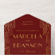 Maroon and Gold Art Deco Wedding All In One Invitation