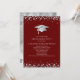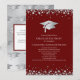 This modern design features a graduation hat and confetti in silver on a background of maroon with white text.