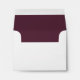White all purpose note card size envelope, with a rich maroon colour, on the inside. Dark grey text return address on the back is fully customizable and ready to personalize with your information. Lovely finishing touch to your note cards or thank you cards.