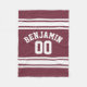 Maroon and White Jersey Stripes Custom Name Number Fleece Blanket
