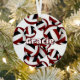 This volleyball themed ornament is printed on the front and back with the image of a cluster of varied size maroon, black and white volleyballs - customize with the athlete's name on the front and commemorative year on the back - by katz_d_zynes