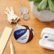 This cool basketball themed keychain features the realistic image of a basketball that has alternating blue, white and maroon recolored panels - easily customize with athlete name and school & mascot name on the front and jersey number on the back - by katz_d_zynes