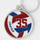 This volleyball themed metal keychain features the realistic image a maroon, blue and white volleyball, upon which you can customize the player's name & jersey number in a varsity letter style font - by katz_d_zynes