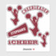 Cheerleader themed sticker set sheet done in maroon and white, with silhouettes of cheerleaders, megaphone and graphic text. Personalize the name, on the megaphone, to read what you want.