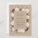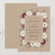 A warm tan background sets the stage for a rich display of deep maroon and cream blooms. Hand-painted white anemones with dark centres and burgundy roses are featured in a lush arrangement with dusty green foliage. This design offers a sophisticated and moody aesthetic, capturing the essence of a refined rustic event through its botanical artistry.