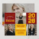Invitation à la graduation moderne marron et jaune doré - 4 Photo (3 avant, 1 arrière) Collection de l'année de cours répétitive
