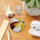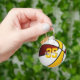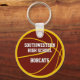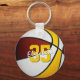 This easy-to-personalize basketball themed keychain features the realistic image of a basketball that has alternating maroon, white and gold recolored panels on the front and a simple maroon basketball shape on the back - easily personalize with player name & jersey number on the front and school or club name & mascot name on the back - by katz_d_zynes
