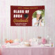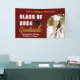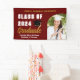 This modern maroon and gold custom senior graduation party banner features classy white typography of your college name for the class of 2025 in Varsity letters and your senior photo under a trendy arch. Customize with your graduate name under the chic handwritten script and black grad cap for great celebration decor with your photograph.