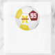 These sporty soccer 3 inch round stickers for a boy or girl feature a simple soccer ball graphic with maroon, gold and white panels - customize with the athlete's name, monogram and jersey number - by katz_d_zynes