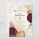 Beautiful bridal shower invitations featuring maroon and beige gold flowers with green leaves .
