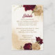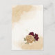 Beautiful wedding enclosure card featuring maroon and beige gold flowers with green leaves .