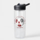 This team colours soccer themed water bottle is suitable for girls or boys and features the realistic image of a soccer ball that has maroon, grey and white panels, upon which you can personalize the athlete's monogram or varsity letter - customize the school or club name encircling the top of the soccer ball, athlete name below, and jersey number on the sides of the bottle - by katz_d_zynes