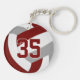 This team colours volleyball themed keychain for girls or boys features a realistic looking maroon, grey and white volleyball upon which you can customize the player's name, jersey number and court position, plus school or club name and mascot name in a varsity letter style font - by katz_d_zynes