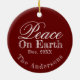 This minimalist crimson holiday ornament with it's simple "Peace on Earth" design is the perfect holiday gift, or tree accessory!