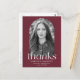 Modern graduation thank you postcard featuring the graduate's photo framed by a maroon arch-shaped frame. "Thanks" is displayed in white modern italicized lettering. Personalize the front of the trendy graduation thank you postcard by adding the graduate's name, school name, and graduation year. The postcard reverses to display your return address and custom message.