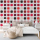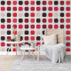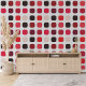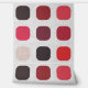 This design features a modern textured geometric motif with black, dark red, maroon, magenta, pink, and beige rounded squares on an ivory white coloured backdrop. The pattern is both ornate and elegant, exuding a funky hipster essence. It's a sophisticated and chic design that represents eclectic minimalism, ideal for artistic interior designers, home decor lovers, trendsetters, and aficionados of vintage, retro, or abstract digital geometric patterns. This ornate yet trendy hipster pattern is versatile and offered on a range of contemporary home decor products, suitable for enhancing the atmosphere of various spaces like master bedrooms, kitchens, living rooms, man caves, college dormitories, condominiums, studios, or apartments.