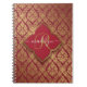 Maroon Red Gold Fleur Damask Pattern Monogram Spiral Photo Notebook.