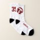Ces chaussettes de volley-ball marron et blanc d'équipe pour filles peuvent être personnalisées avec son nom et son numéro de maillot ainsi que le nom de l'école et le nom de la mascotte dans marron dans une police de style lettre de variété - son nom est situé sur un graphique de volley-ball marron et blanc - par katz_d_zynes | voir d'autres combinaisons de couleurs d'équipe et cadeaux de volley-ball de filles dans ma collection de cadeaux d'esprit d'équipe de couleurs d'école de volley-ball >>> https://www.zazzle.com/collections/119253642051968072