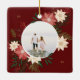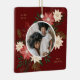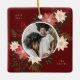Maroon Round Photo Floral Kids Christmas Ceramic Ornament