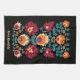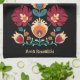 Maroon, teal and pastel yellow Folk Wycinanki Kitchen Towel
