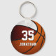 This team colours basketball themed keychain for boys or girls features the realistic image of a basketball that has two recolored panels--one maroon and one white - easily customize with player name & jersey number - by katz_d_zynes