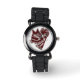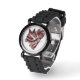 Great looking sporty cheerleader's watch with maroon and silver graphic of a cheerleader's uniform, pom pom, and megaphone. Graphic text reading Cheer runs across the uniform and white custom text, on the megaphone is ready to personalize with your favourite cheerleader's name. Makes a great gift idea.