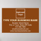 Poster que vous pouvez customiser pour mettre votre nom d'entreprise. Vous pouvez l'utiliser comme matériel de marketing pour annoncer votre entreprise ou pour promouvoir votre marque auprès de clients ou de clients. Affiche personnalisable que vous pouvez utiliser pour développer la sensibilisation de marque. Customisez-le et affichez-le sur le mur de votre bureau, de votre entrée, de votre réception, de votre hall ou dans des endroits appropriés visibles aux clients ou aux clients. Les dessins sont des textes brun clair et blanc sur forme rectangulaire arrière - plan brune et au format paysage. Pour customiser cette affiche, téléchargez votre logo d'entreprise, tapez votre nom d'entreprise ou d'entreprise, votre adresse, votre numéro de téléphone, votre courriel et votre site Web ou votre page de médias sociaux. Veuillez vérifier l'apparence après avoir téléchargé le logo et tapé des textes. Si l'apparence vous plaît, vous pouvez passer votre commande maintenant. Si vous avez besoin de redimensionner et déplacer le logo et les textes pour s'adapter à cette affiche ou à d'autres formes et tailles que vous choisirez, veuillez modifier l'outil de conception. Vous pouvez également effectuer d'autres modifications en fonction de l'apparence que vous préférez dans l'outil de conception, comme changer la couleur de l'arrière - plan de l'affiche, la couleur de la police et le style de police.
