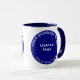 Mug combo personnalisable bleu marine avec marque d'affaires de forme ronde. Mug que vous pouvez utiliser dans votre café, diner ou restaurant pour construire la notoriété de marque pendant que vos clients aiment siroter le café ou le thé aromatique et savoureux que vous leur avez servi. Mug comme produit promotionnel, cadeau ou cadeau offert à vos clients ou clients, une stratégie de marketing pour annoncer votre entreprise ou promouvoir votre marque. Pour customiser cette tasse, téléchargez votre logo d'entreprise, tapez votre nom d'entreprise, ville ou ville et état. Veuillez vérifier l'apparence sur les côtés avant et arrière après avoir téléchargé le logo et tapé des textes. Si l'apparence vous plaît, vous pouvez passer votre commande maintenant. Si vous avez besoin de redimensionner et déplacer le logo et les textes pour s'adapter au modèle de cette tasse ou sur la taille et le style que vous choisirez, s'il vous plaît changer dans l'outil de conception. Vous pouvez également effectuer d'autres modifications dans l'outil de conception, telles que la modification de la couleur de police, du style de police, de la couleur de la forme ronde et l'ajout de la couleur arrière - plan.