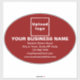 Grand autocollant vinyle de forme ovale que vous pouvez customiser pour mettre votre nom d'entreprise et d'autres informations de votre entreprise. Affichez-le comme matériel marketing pour annoncer votre entreprise ou pour promouvoir votre marque auprès de clients ou de clients. Vous pouvez également l'utiliser comme matériau d'emballage pour les grandes boîtes. Autocollant vinyle personnalisable que vous pouvez utiliser pour construire la sensibilisation de marque. Les couleurs design sont des textes blancs sur arrière - plan rouge. Pour customiser cet autocollant, téléchargez votre logo d'entreprise, tapez votre nom d'entreprise, votre adresse, votre numéro de téléphone, votre courriel et votre site Web ou votre page de médias sociaux d'affaires. Veuillez vérifier l'apparence après avoir téléchargé le logo et tapé des textes. Si l'apparence vous plaît, vous pouvez passer votre commande maintenant. Si vous avez besoin de redimensionner et déplacer le logo et les textes pour tenir sur cet autocollant ou sur la taille que vous choisirez, s'il vous plaît changer dans l'outil de conception. Vous pouvez également modifier la couleur arrière - plan, la couleur de police et le style de police dans l'outil de conception.