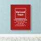 Imprimez sur toile que vous pouvez customiser pour mettre votre nom d'entreprise et d'autres informations de votre entreprise. Vous pouvez l'utiliser comme matériel de marketing pour annoncer votre entreprise ou pour promouvoir votre marque auprès de clients ou de clients. Impression de toile personnalisable que vous pouvez utiliser pour sensibiliser la marque. Customisez-le et affichez-le sur le mur de votre magasin, magasin, bureau, hall, réception, entrée ou dans un endroit approprié visible par les clients ou les clients. Les couleurs et la forme du design sont des textes blancs sur la forme du rectangle au format arrière - plan rouge et au format portrait. Pour customiser cette impression de toile, téléchargez votre logo d'entreprise, tapez votre nom d'entreprise, votre adresse, votre numéro de téléphone, votre adresse électronique et votre site Web ou votre page de médias sociaux. Après avoir téléchargé le logo et tapé des textes, veuillez vérifier l'apparence. Si l'apparence vous plaît, vous pouvez passer votre commande maintenant. Si vous avez besoin de redimensionner et déplacer le logo et les textes pour s'adapter à cette impression de toile, s'il vous plaît changer dans l'outil de conception. Vous pouvez également effectuer d'autres modifications dans l'outil de conception en fonction de l'apparence de cette impression de toile que vous préférez, comme changer la couleur arrière - plan, la couleur de police et le style de police.