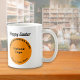 Mug avec salutation de Pâques et marque d'entreprise orange ronde que vous pouvez customiser en téléchargeant votre logo d'entreprise, en tapant votre nom d'entreprise et l'emplacement de votre entreprise. Vous pouvez l'inclure dans vos produits promotionnels, cadeaux ou cadeaux offerts à vos clients ou clients cette Pâques, une stratégie de marketing pour annoncer votre entreprise ou promouvoir votre marque. Tasse personnalisable que vous pouvez utiliser pour développer la sensibilisation de marque. Veuillez vérifier l'apparence des côtés avant et arrière après avoir téléchargé le logo et tapé des textes. Si l'apparence vous plaît, vous pouvez passer votre commande maintenant. Si vous avez besoin de redimensionner et repositionner le logo et les textes pour s'adapter au modèle ou au style que vous avez choisi, s'il vous plaît ajuster dans l'outil de conception. Joyeux Pâques ! Je vous souhaite plus de ventes ce jour férié.