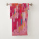 Peinture abstraite audacieuse dans les tons rose et orange.