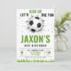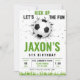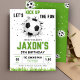 Célébrez la journée spéciale de votre petit avec notre modèle de carte d'invitation d'anniversaire de football entièrement personnalisable. Conçu avec un thème de football classique en blanc et vert, comme un terrain de football, cette invitation fera ressortir votre fête. Téléchargez maintenant pour créer l'invitation parfaite sur le thème de football pour la célébration prochaine de votre enfant.