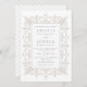Pale and ethereal in an elegant colour palette of light linen beige, dove grey and crisp white, our Marrakesh wedding invitation features a Moroccan style geometric border framing your wedding details in traditional serif typefaces. Cards reverse to a subtle dotted diamond pattern.