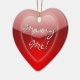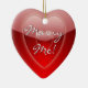 Lovely red heart shaped ornament, with graphics of shinny red on red hearts and text reading Marry Me! On the reverse is solid red and text in white. Personalize by adding your own text, or just change the name. Surprise her this year, with a marriage proposal ornament on your tree.