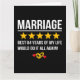Funny 64th wedding anniversary gift for happily married couples that would give their marriage to their husband or wife a 5 star rating! Perfect for a married couple celebrating 64 years of marriage with a 64th wedding anniversary party! Features 'Marriage - Best 64 Years of My Life. Would Do It All Again!' cute marriage anniversary quote & 5 star rating w/ wedding rings & hearts graphics. Great way for the happily married couple to always remember their 64th wedding anniversary!