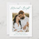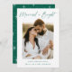 Celebrate your first Christmas as a married couple with our Married and Bright holiday photo card! The card features "Married & Bright" in a green hand-lettered modern script. Your wedding photo is displayed with a white rough edge border. Personalize the front of the card by adding a custom greeting with your names shown below. The card reverses to display a green background with a white sparkling star pattern.
