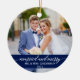 Married and Merry Calligraphy Wedding Blue Ceramic Ornament