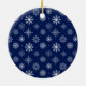 Married and Merry Elegant Calligraphy Script Wedding Photo Blue Ornament with Snowflakes back.