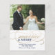 This 1-photo just married announcement is perfect for the newly married and is a great way to announce your marriage and show off some of your wedding photos around the holidays. This card features faux gold foil and elegant script fonts. Add a second photo to the back of the postcard. Add your return address to the back so that everyone has your new address.