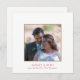 Contemporary style for your first Christmas as Mr and Mrs with your favourite photo from your wedding centred on the front with a single gold line border and simple yet elegant text with Merry & Married and your names and message on the reverse. Easily swap in your own picture with the sample in the template and personalise the typography as required. You may also consider our handy coordinating individual name and address stickers in this collection to make light work of your holiday mailings.