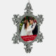 Married and Merry Elegant Calligraphy Script Wedding Photo Red Snowflake Pewter Christmas Ornament